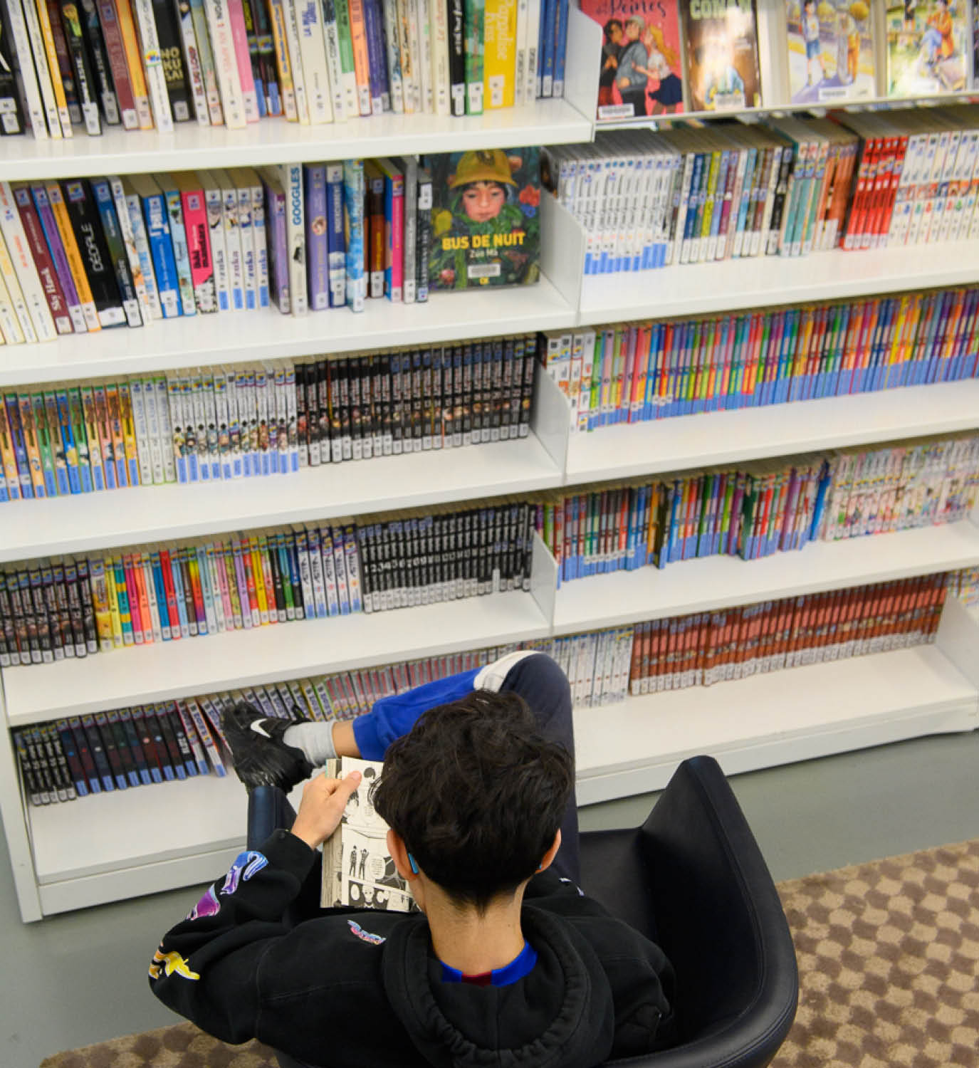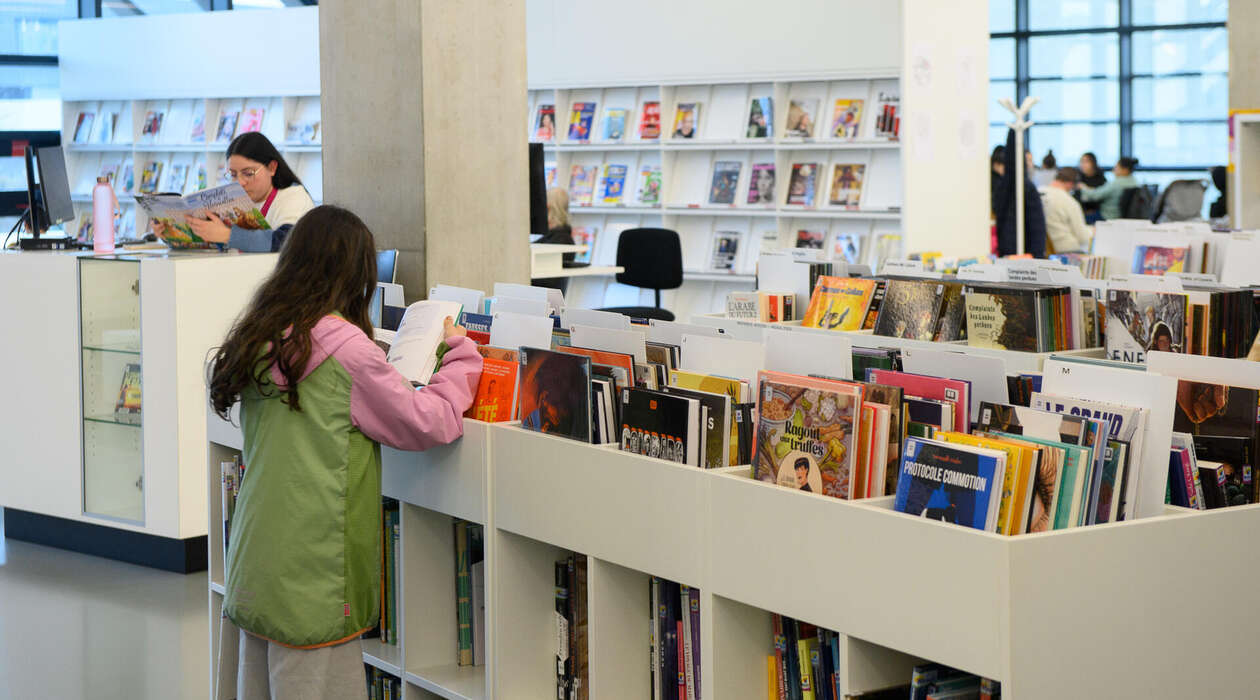 Elle propose des collections à consulter sur place, des services informatiques, des films, jeux vidéo et jeux de société, BD, mangas, presse, architecture et livres d’art, espaces de travail pour les étudiants et un espace dédié aux enfants et à leurs parents !